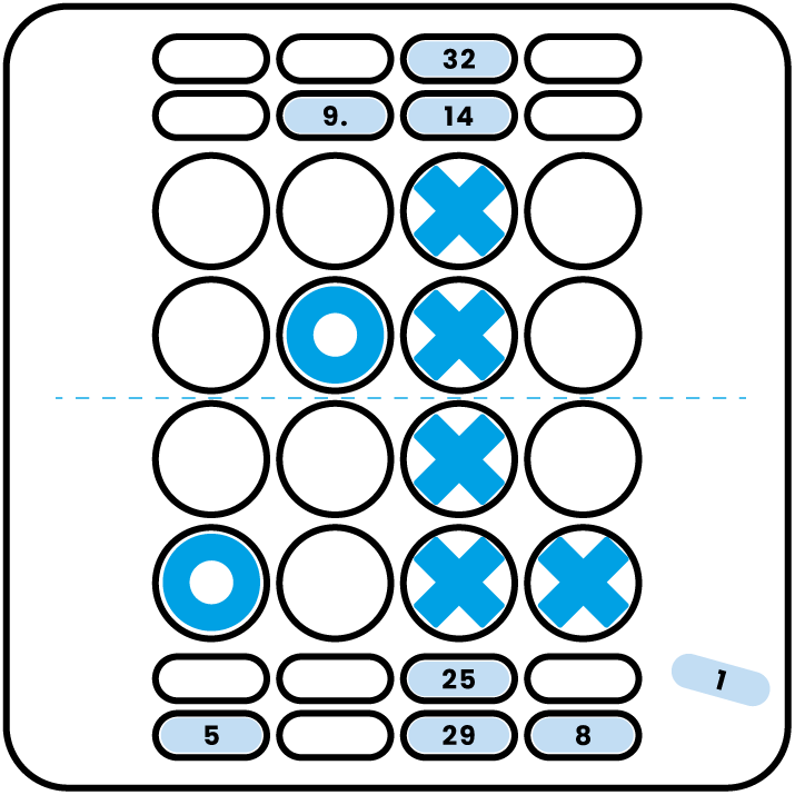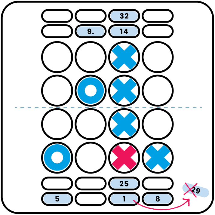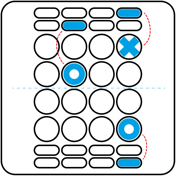 TT8 removes TT12 and the player removes the opponent’s piece (nought) and replaces it with theirs (cross).