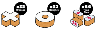 Take turns placing one piece (X or O) per turn after drawing one Time Tile from your stack.