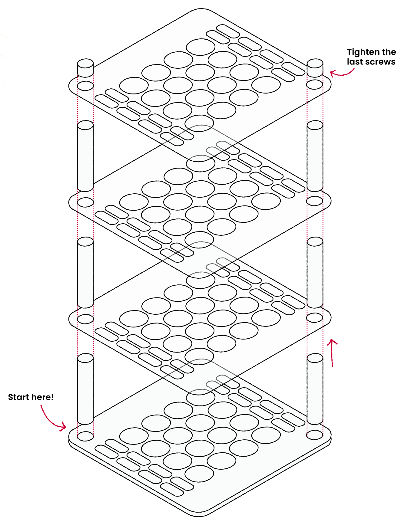 A piece cannot be removed once it is turned over to the red side.To win, form an uninterrupted row of four red pieces in any direction, including diagonal and through the depth of the board.
